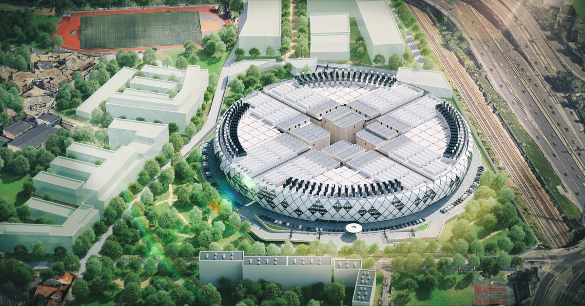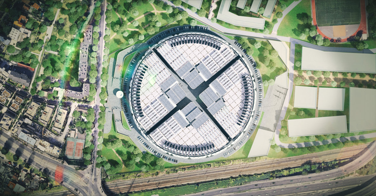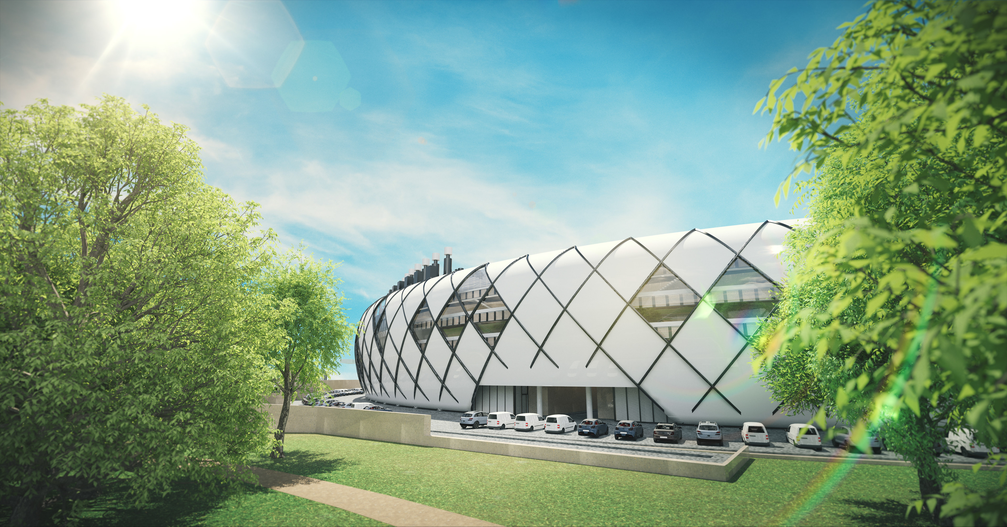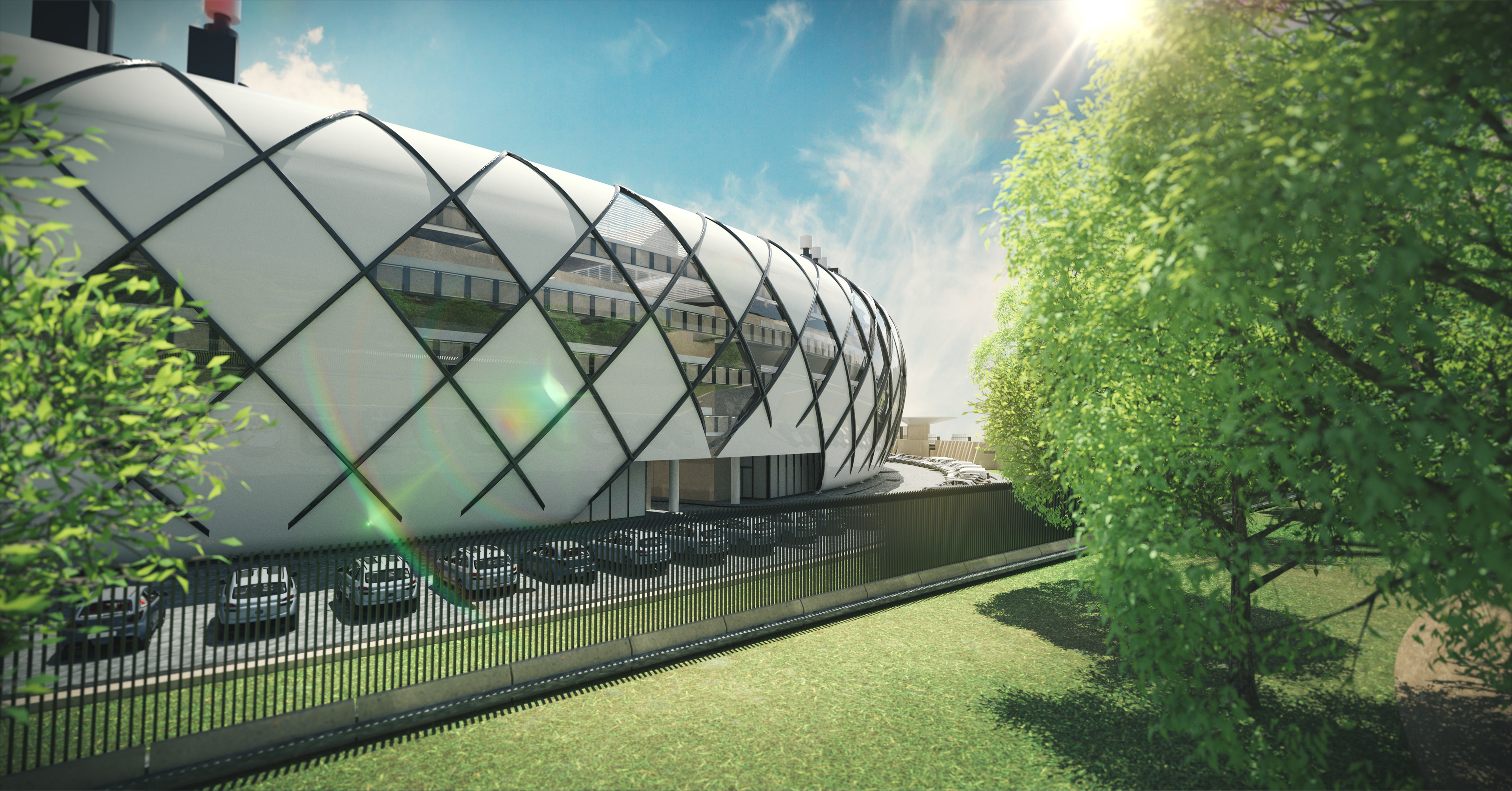 Application des textures sur le bâtiment principal et modélisation de l'environnement à partir de plans satellites.